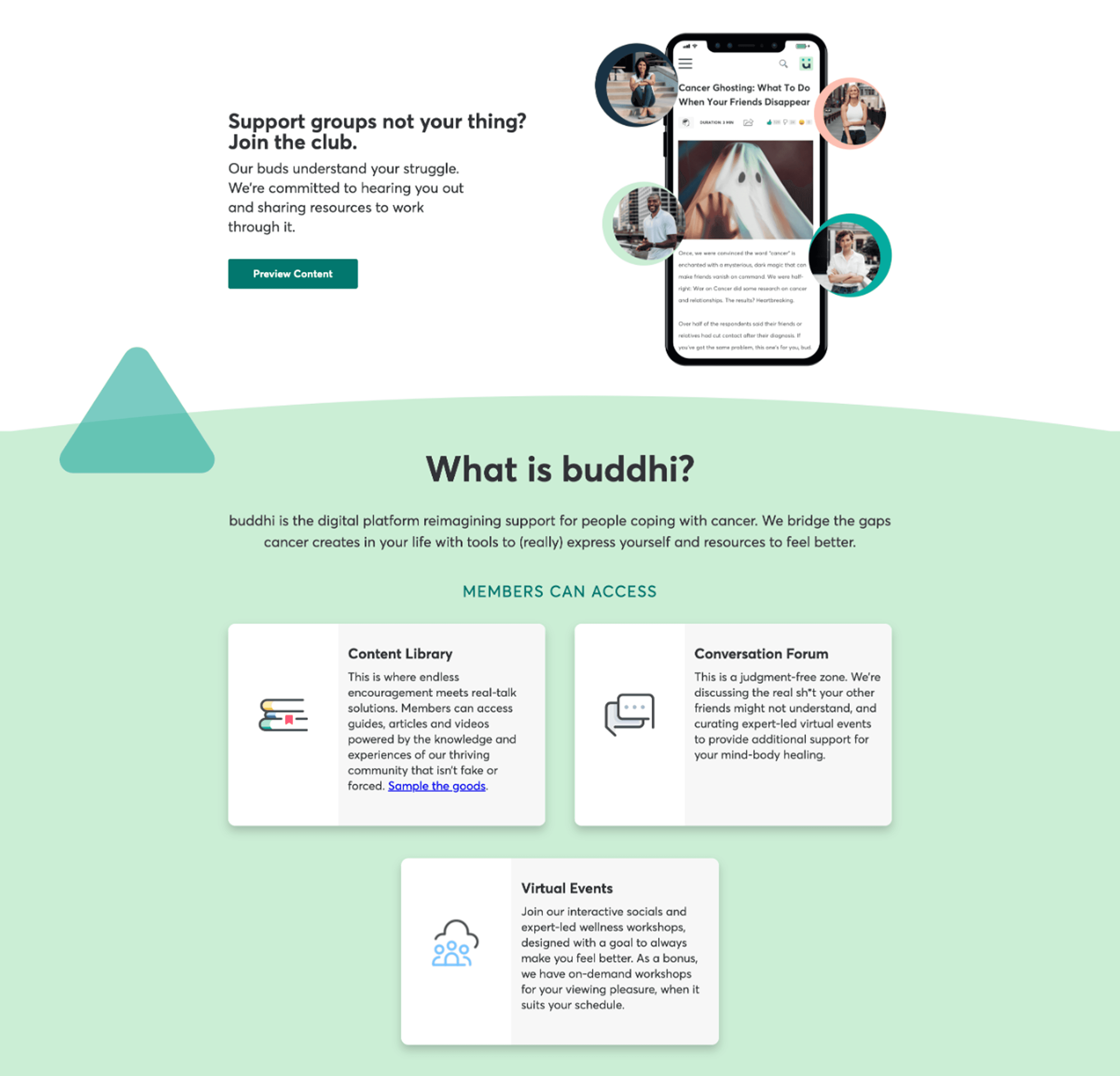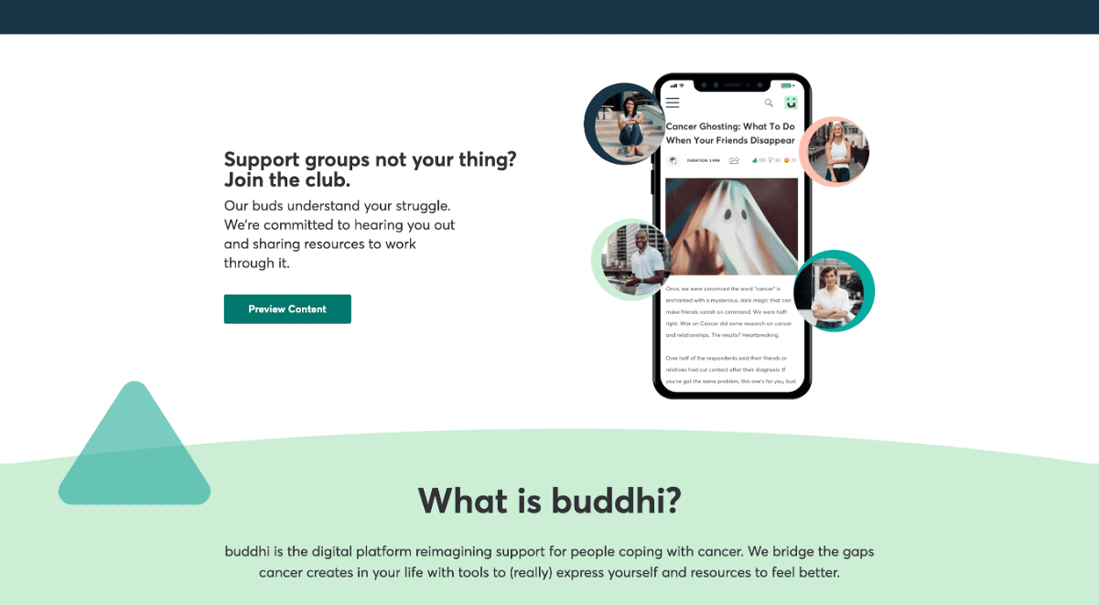 Buddhi was a digital platform founded by cancer survivor Kathleen Brown, who recognized a profound gap in emotional support for people navigating cancer. Through her own diagnosis and treatment, she saw how often traditional sources fell short and recognized the need for a more authentic, peer-to-peer emotional support system. Buddhi was created to reimagine that support system by offering a more human, relatable space where individuals could connect, share, and feel understood.